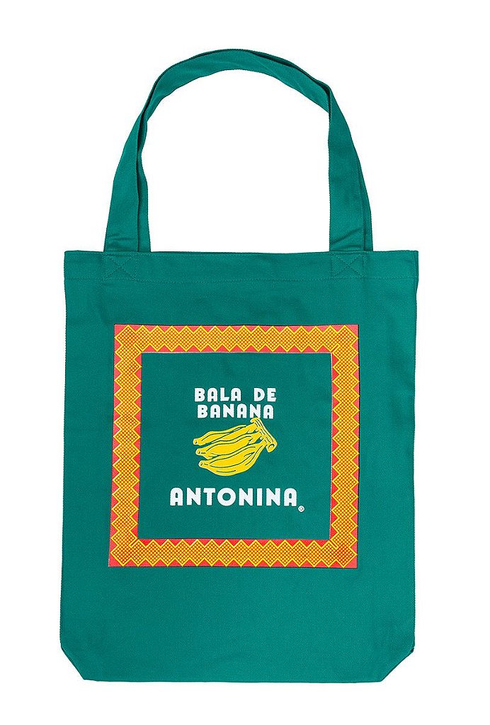 Ecobag em algodão verde, estampada com o tema "institucional".